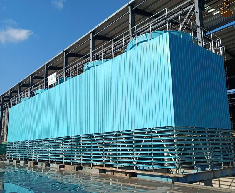 玻璃钢冷却塔的冷却原理是,简单来说是两个循环:一个内循环、一个外循环。没有填料,主核心部分为紫铜管表冷器。
